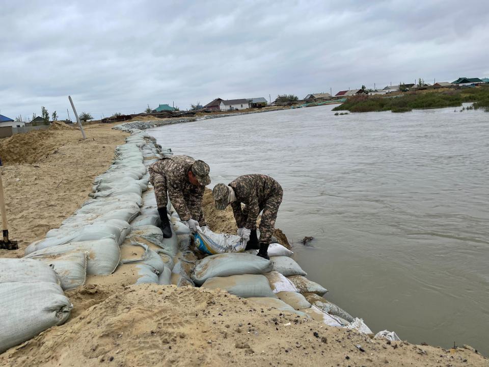 В селах Куйлыс и Жайсанбай Иргизского района Актюбинской области уложено 2 800 мешкотар и 1 550 тонн инертных материалов. Берегоукрепительные работы продолжаются.