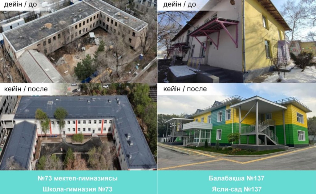 В Бостандыкском районе выполнены работы по сейсмоусилению и капитальному ремонту Коррекционного ясли-сада №137 для детей с нарушениями слуха и ясли-сада №87. Проведена также реконструкция здания под детский сад на 240 мест. Обновленные учреждения оснащены современными групповыми помещениями, залами для музыкальных и физкультурных занятий, медицинскими и бытовыми блоками. Все здания полностью адаптированы для комфортного и безопасного пребывания детей.