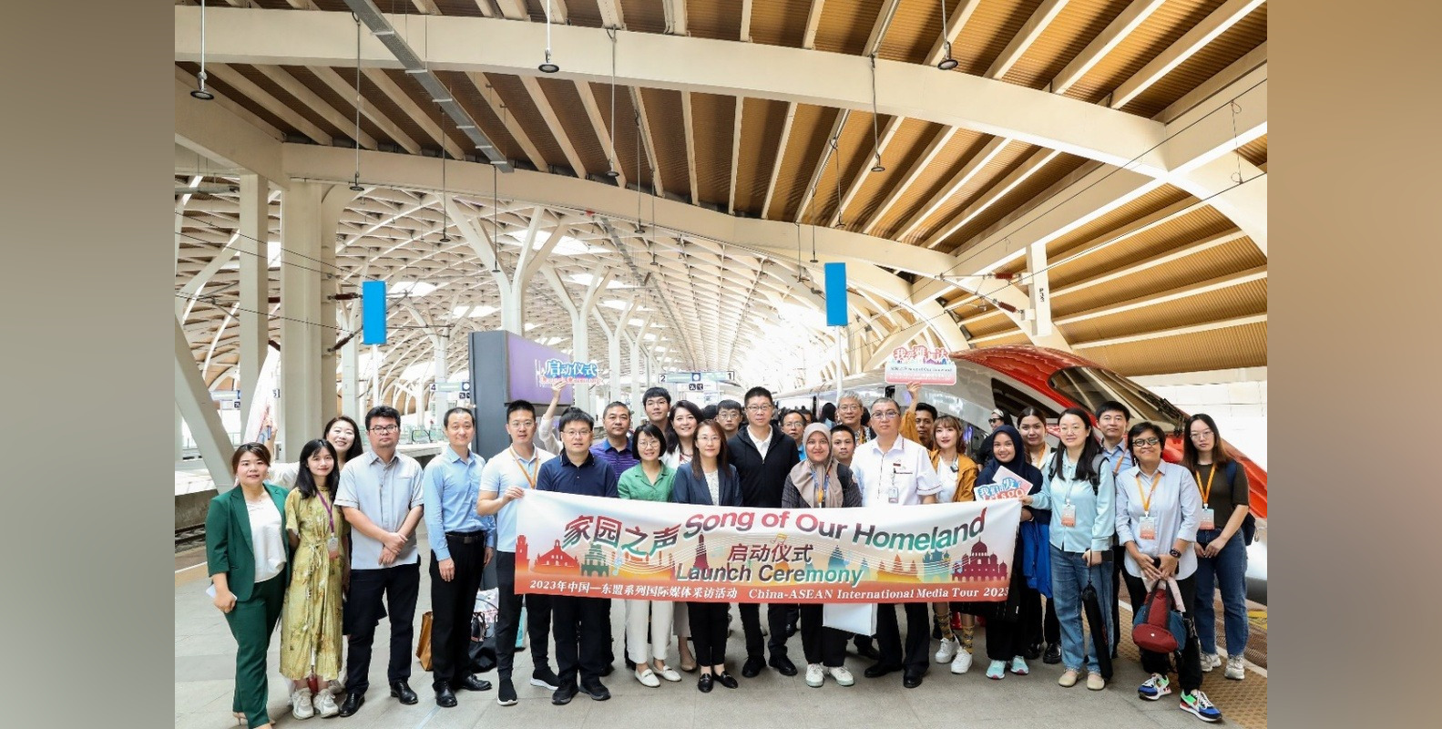 The "Song of Our Homeland" China-ASEAN International Media Tour 2023 was launched at the Halim Railway Station of the Jakarta-Bandung High-Speed Railway in Jakarta, Indonesia, on Wednesday.