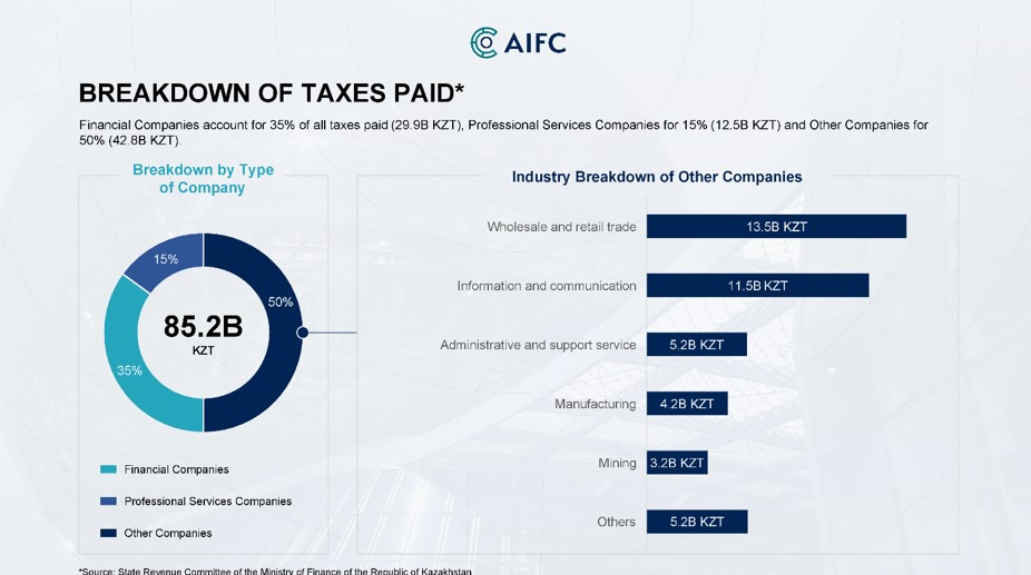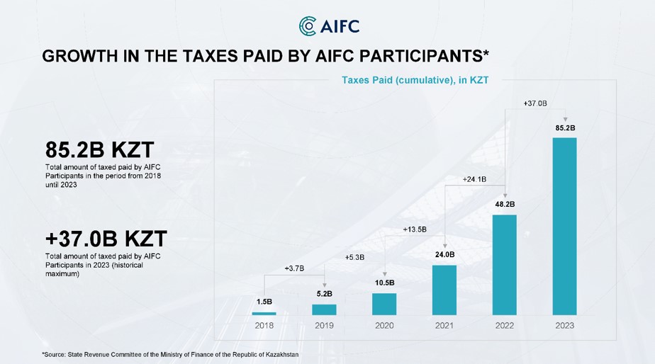 By the end of 2023, participants of the Astana International Financial Centre (AIFC) contributed 85.2 billion tenge in taxes to the country’s budget. Analysts of the AIFC Authority presented this data in the annual report on the centre’s participants.
