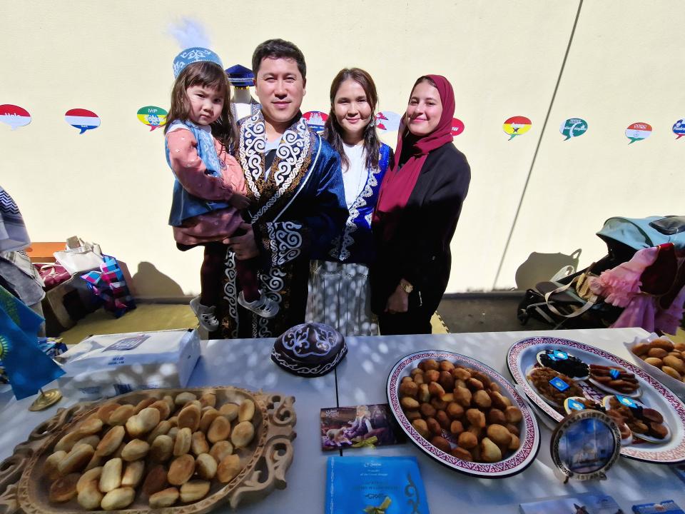 For this holiday, Kazakh students created and decorated a “Kazakhstan corner” where children, teachers, and guests could see elements of national culture and history: traditional clothing, musical instruments, household items, and symbols of Kazakh statehood and identity.