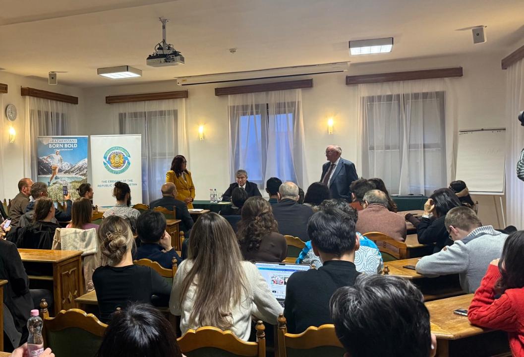 During the meeting, participants listened to Ambassador A.Saparbekuly’s lecture on Kazakh-Hungarian strategic partnership, and students presented reports they had prepared about Kazakhstan. In addition, master classes in asyk atu and togyzkumalak were conducted by the “Hungarian-Kazakh Ethnosport and Culture Association” led by Zhanargul Fenyvesi.