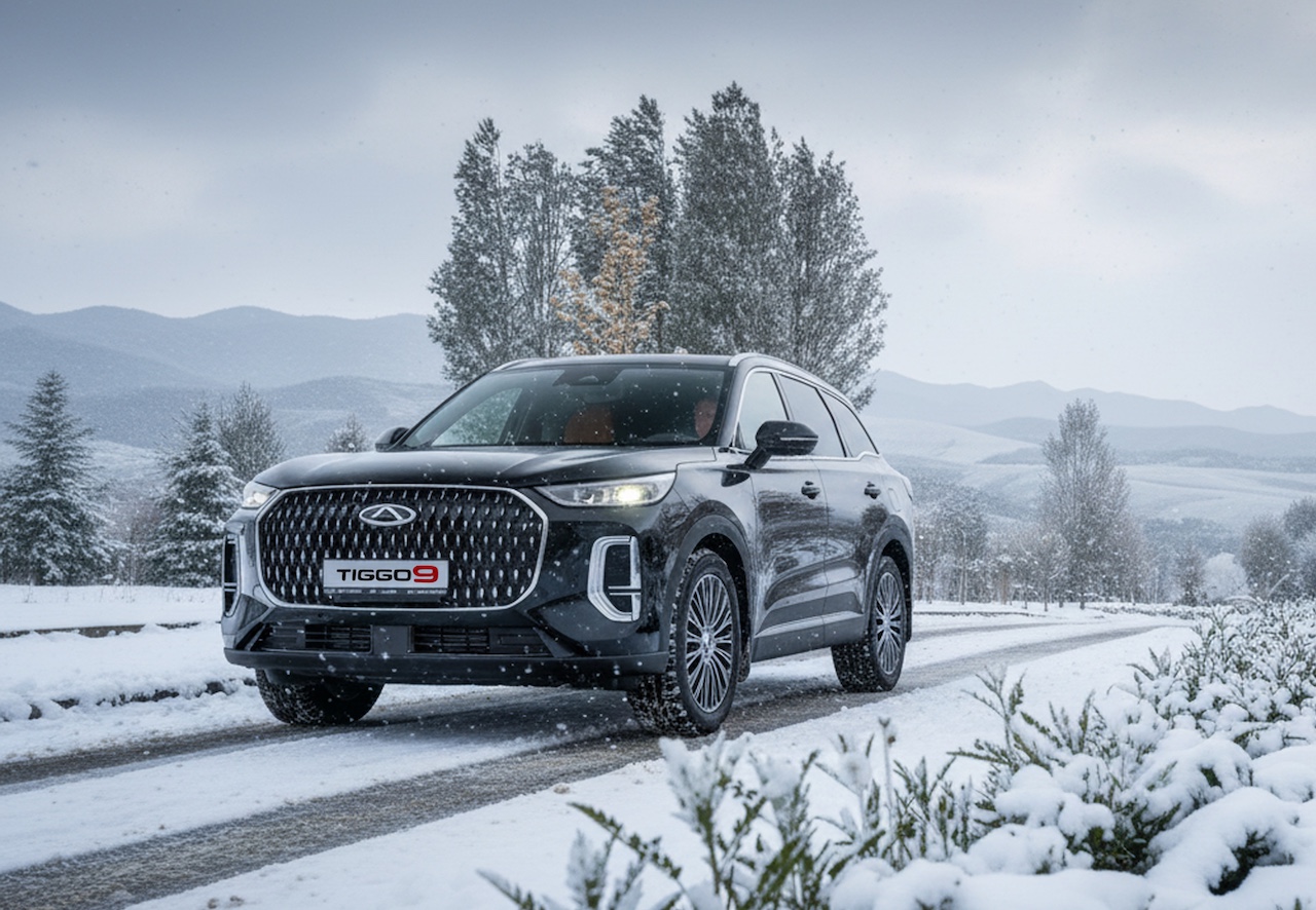 The crossover is equipped with a 2.0-liter turbocharged engine producing 245 hp, intelligent all-wheel drive and a suite of modern safety systems that meet premium-segment standards. In the mountain setting, the Tiggo 9 naturally embodied the idea of confident mobility in winter conditions.