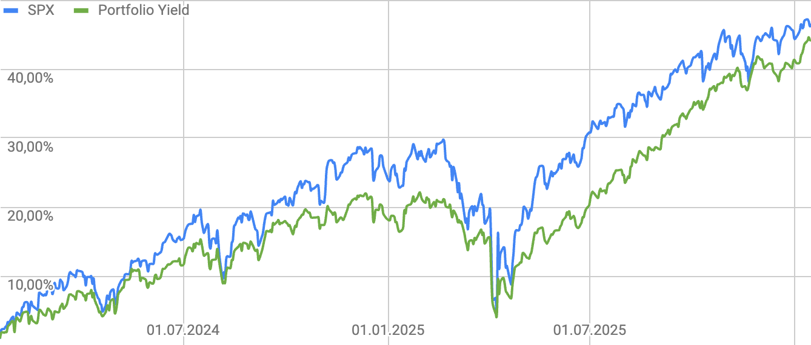 Portfolio performance and relative strength versus the S&P 500 over the past two years. Source: Google Finance, Freedom Broker.