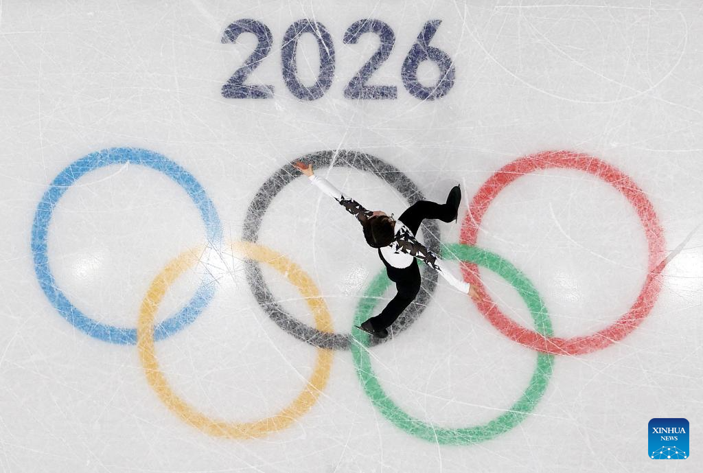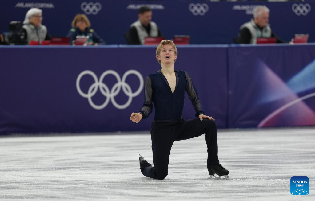 Ilia Malinin of the United States competes during the short program of men single skating for figure skating team event at the Milan-Cortina 2026 Olympic Winter Games in Milan, Italy, Feb. 7, 2026. (Xinhua/Cheng Min)