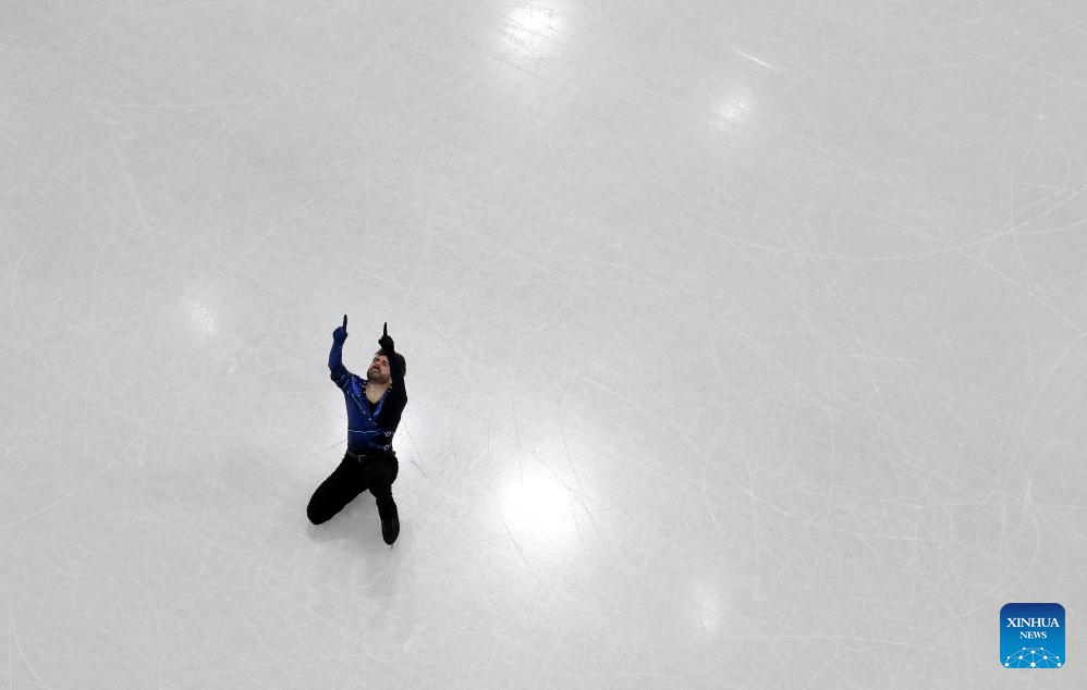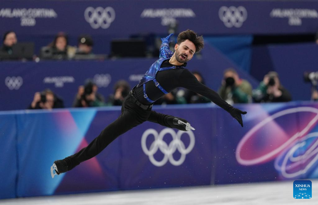 Daniel Grassl of Italy competes during the short program of men single skating for figure skating team event at the Milan-Cortina 2026 Olympic Winter Games in Milan, Italy, Feb. 7, 2026. (Xinhua/Cheng Min)