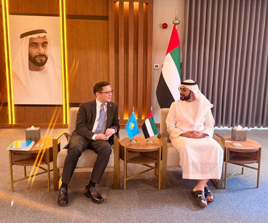 Ambassador of Kazakhstan to the United Arab Emirates Rauan Zhumabek held a meeting with Khalifa Mubarak Al Zahiri, Rector of the Mohamed bin Zayed University for Humanities, to discuss strengthening educational and cultural ties between the two countries, DKNews.kz reports.
