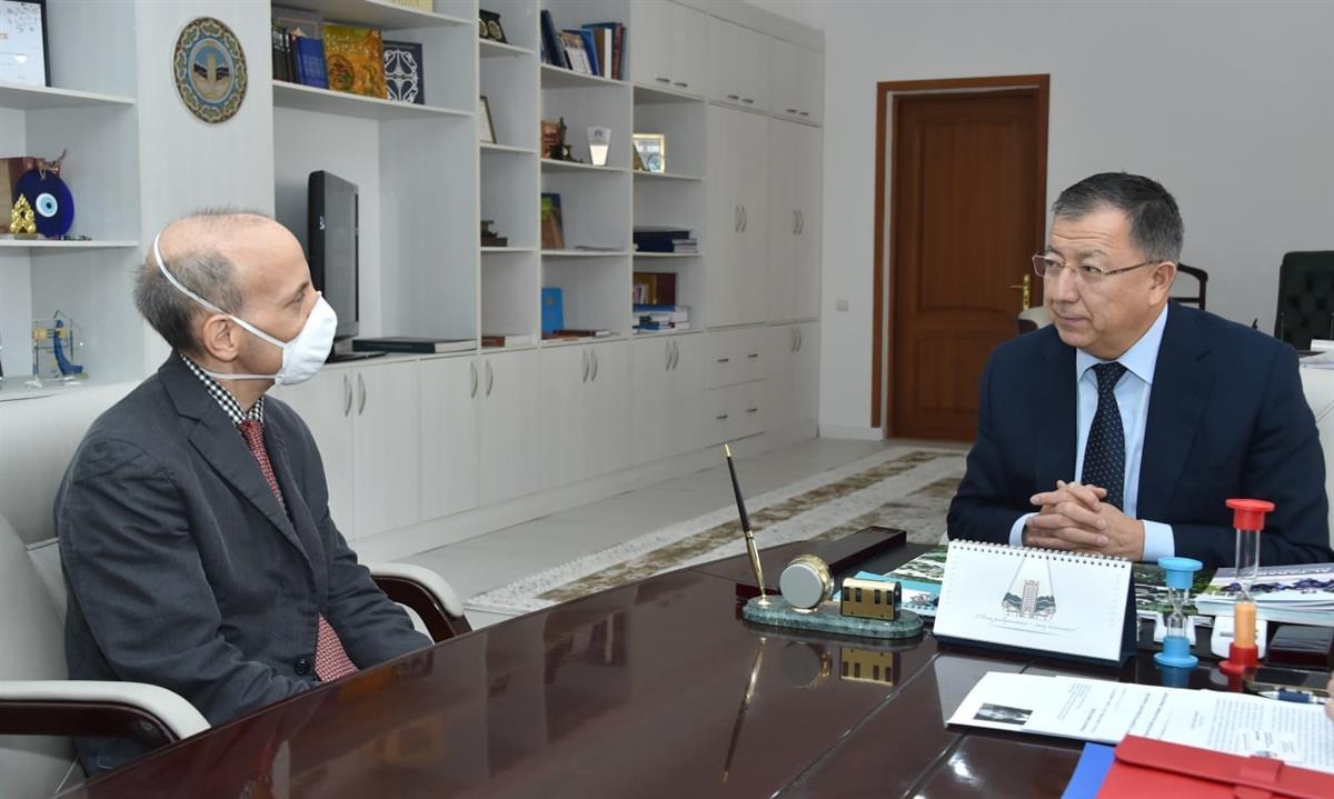 Құрметті мейманды қарсы алған Жансейіт Түймебаев университеттің тарихы мен жетістіктері туралы баяндап, шетелдік жоғары оқу орындарымен жасалған келісімдер туралы айтып берді. Өз сөзінде білім ордасының басшысы жақында ҚазҰУ-ға зерттеу университеті мәртебесі берілгенін атап өтті.