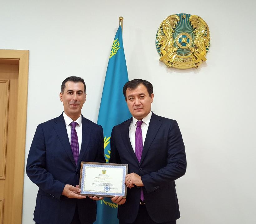 Кездесу соңында Ливан Елшісіне Қазақстан Республикасы Сыртқы істер министрінің алғыс хаты табысталды.