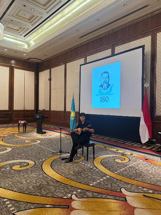 Отырыстың екінші бөлімі Абай Құнанбайұлының 180-жылдығын мерекелеу шеңберінде Индонезия тіліне аударылған ұлы ақын мен ағартушының «Қара сөздері» кітабының екінші басылымының тұсаукесерін қамтыды. ҚР Елшісі Абайдың көптеген шет тілдерге аударылған шығармалары жалпыадамзаттық құндылықтарға толы болуына орай, Абайдың бай мұрасы қазақ халқы үшін ғана емес, бүкіл адамзат үшін рухани бағдар болғанын мәлімдеді. Өйткені, дипломат бұл кітап индонезиялық достарға қазақтардың жан дүниесін жақсы түсінуге, екі достас ел халықтары арасындағы мәдени және адами байланыстарды нығайтуға мүмкіндік беретініне сенімін білдірді. Іс-шара аясында қонақтарға Абайдың өмірі мен қызметі туралы фильм көрсетіліп, оның әйгілі «Көзімнің қарасы», «Айтым сәлем Қаламқас», «Желсіз түнде жарық ай» шығармалары, қазақ билері, сондай-ақ домбыра мен фортепианодағы басқа да танымал композициялар орындалды.