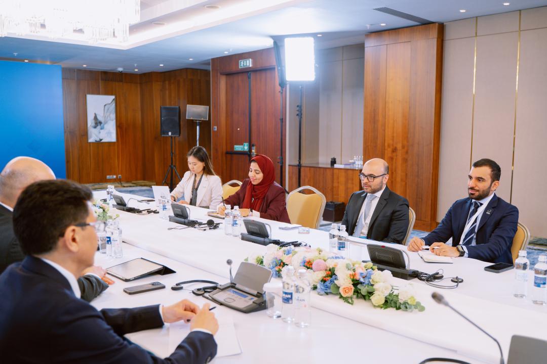 Алғашқы кездесу Біріккен Араб Әмірліктерінің Инвестициялар жөніндегі вице-министрі Мухаммед Абдуррахман Альхауимен өтті. Тараптар сауда және инвестициялық ынтымақтастықты кеңейту, шетелдік инвестицияларды тарту саласындағы тәжірибе алмасу, сондай-ақ бірлескен инфрақұрылымдық және индустриялық жобаларды іске асыру перспективаларын талқылады. Ерекше назар Қазақстан-БАӘ стратегиялық инвестициялар платформасы шеңберіндегі кооперация мүмкіндіктеріне және мемлекеттік-жекеменшік серіктестік саласындағы үздік тәжірибелермен алмасуға аударылды.