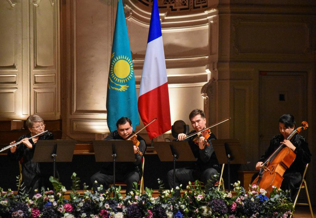 Сахна төрінде Майра Мұхамедқызымен бірге пианист Әлияр Өтетілеу мен Шымкент қалалық опера және балет театрының квартеті өнер көрсетті.