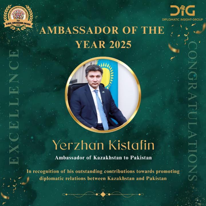 Исламабадта 2025 жылдың қорытындысы бойынша дипломатиялық өкілдіктер басшыларының, халықаралық ұйымдар кеңселерінің және іскер топтар өкілдерінің қызметін бағалауға арналған «Global Ambassador Awards» атты жетінші жыл сайынғы салтанатты рәсім өтті.