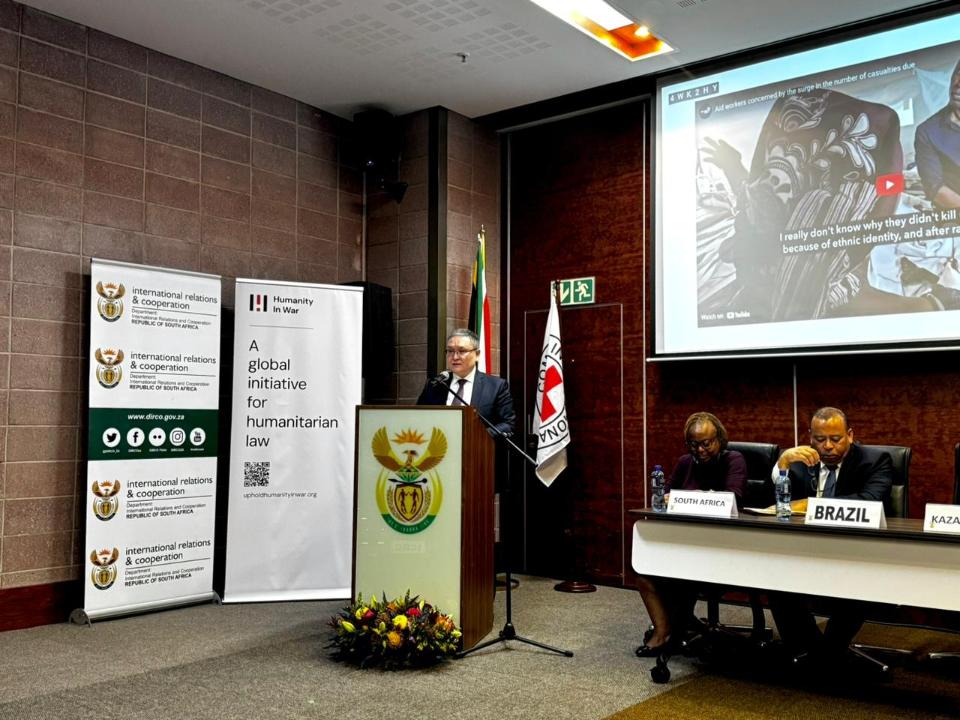 ОАР СІМ Бас директорының орынбасары халықаралық гуманитарлық құқық қағидаттарын сақтаудың маңыздылығын атап өтіп, Оңтүстік Африканың жаһандық қауіпсіздікті нығайтуға қосқан үлесіне тоқталды. Ол елдің халықаралқ қоғамдастықта алушы тарап емес, бейбітшілік пен тұрақтылықты қамтамасыз ету ісінің белсенді қатысушысы әрі үлес қосушысы екенін атап өтті.
