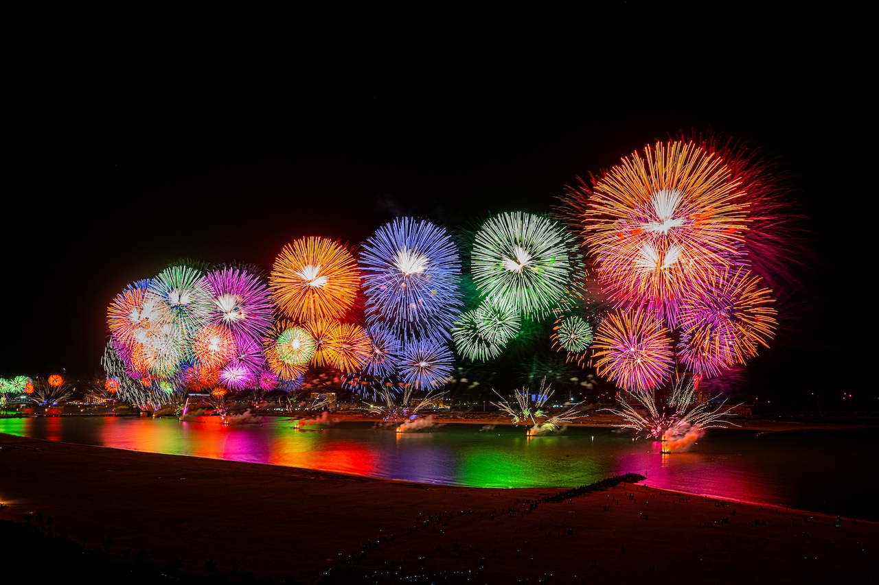 Таң exactly соққан сәтте шоу фейерверкпен жалғасты. Аль-Марджан аралынан Аль-Хамра ауданына дейінгі шамамен 6 шақырымдық жағалауда аспан түрлі түстерге боялды.
