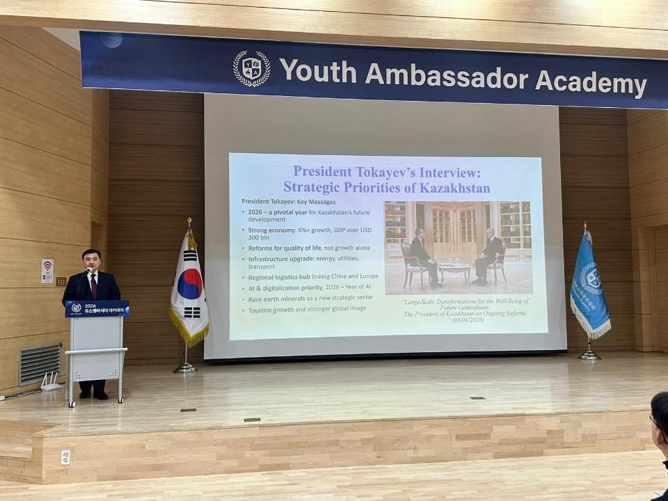 Сеул қаласында Қазақстан Республикасының Корея Республикасындағы Елшісі Нұрғали Арыстановтың «Қазақстанның көпвекторлы сыртқы саясаты және Корея Республикасымен қатынастардың дамуы» тақырыбындағы дәрісі өтті. Іс-шара Корея мәдениет қауымдастығының қолдауымен болашақ дипломаттарды даярлауға арналған тренинг аясында ұйымдастырылды, деп хабарлайды DKNews.kz.