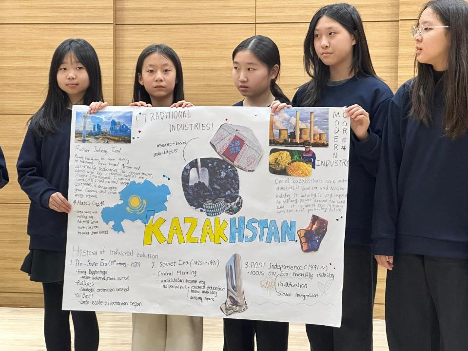 Оқушылар алдын ала дайындалған топтық презентациялар арқылы Қазақстанның мәдениеті, тарихы, сыртқы саясаты және туристік әлеуеті жөніндегі өз көзқарастарын ұсынды. Бұл формат жастардың дайындық деңгейі мен елге деген қызығушылығын айқын көрсетті.