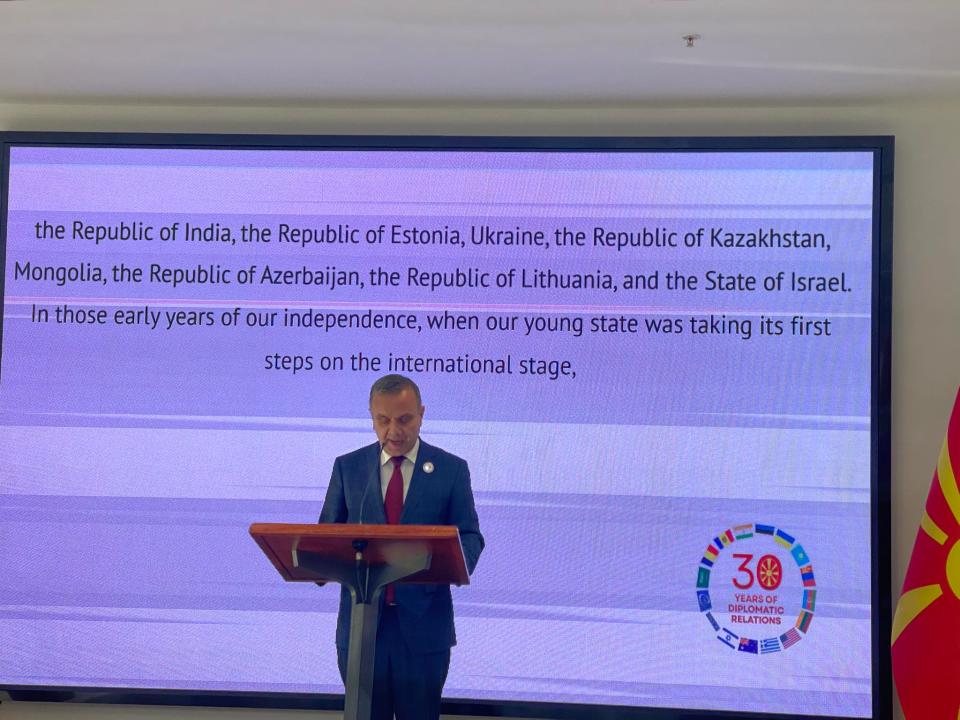 Юбилей аясында Солтүстік Македония үш онжылдық бойы тұрақты дипломатиялық байланыс орнатқан елдер мен халықаралық ұйымдар аталды. Олардың қатарында Қазақстан, сондай-ақ Австралия, Әзербайжан, Эстония, Грекия, Үндістан, Израиль, Литва, Молдова, Моңғолия, Сауд Арабиясы, Румыния, Украина, Америка Құрама Штаттары, сонымен бірге ЕҚЫҰ мен Еуропа Кеңесі бар.
