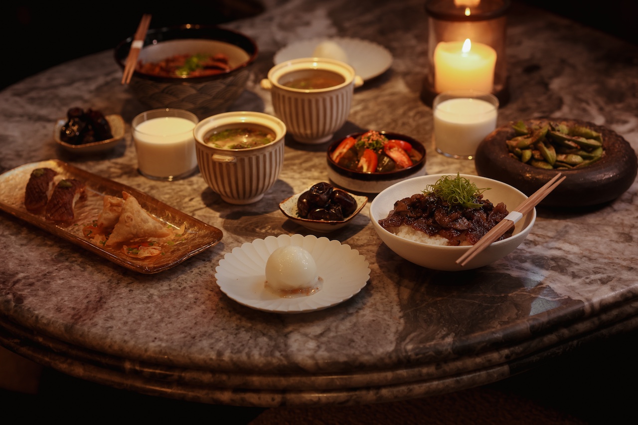 Осы кезеңде көптеген мейрамханалар арнайы мәзірлер ұсынып, кешкі асты ерекше форматта өткізеді. Ашық аспан астындағы шатырлар, ішкі аулалар мен террасаларда үлкен дастарқандар жайылады. Кейбір орындарда кешкі уақытта таңғы ас мәзірі ұсынылады, ал қонақтарға финик пен дәстүрлі сусындар сый ретінде беріледі. Кеш шығыс тәттілері мен хош иісті кофемен аяқталады.