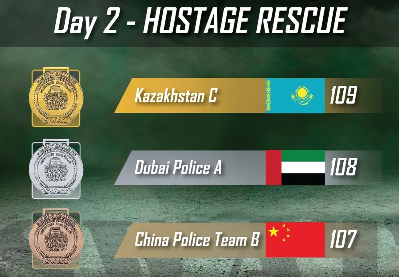 Екінші жарыс күні Tactical events кезеңімен есте қалды. Дәл осы сында «Kazakhstan C» командасы «Кепілге алынған адамды құтқару» тапсырмасын небәрі 00:50,9 секундта орындап, турнирдің жаңа рекордын тіркеді. Бұл — тек жоғары жылдамдық қана емес, мінсіз үйлесім мен кәсіби дайындықтың айқын көрінісі.