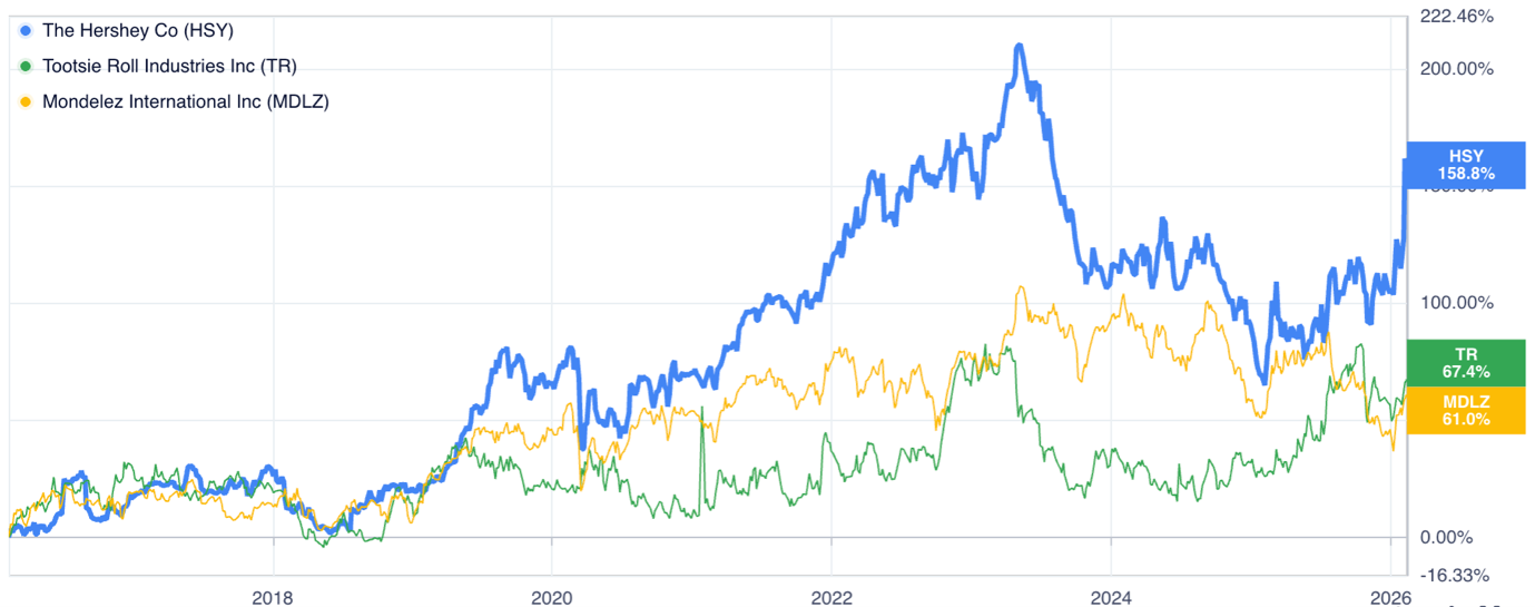 The Hershey Company акцияларының динамикасы. Дереккөз: gurufocus.com