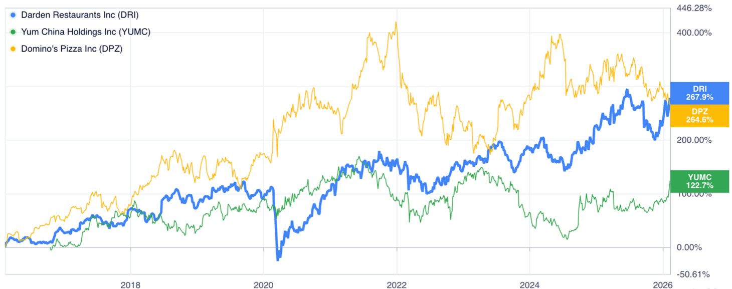 Сондықтан Darden-нің инвестициялық тартымдылығы маусымдық эффектте емес, брендтердің танымалдығы мен бизнестің ауқымында жатыр.