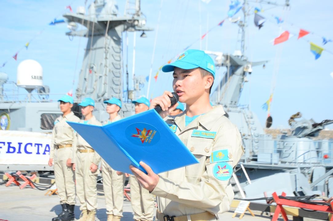 Жасөспірім балалар қозғалысының қатарына қосылатындарға арнап әскери-теңіз базасының бастығы 2-дәрежелі капитан Бауыржан Мұратұлы, Қарулы күштердің ардагері Қайрат Төлепбаев және "Жас Сарбаз" республикалық әскери-патриоттық қозғалысының төрағасы Мейірбек Меңдіғалиев сөз сөйледі. Олар жас ұрпаққа ел игілігі жолында адал қызмет етуге тілектестігін білдірді.