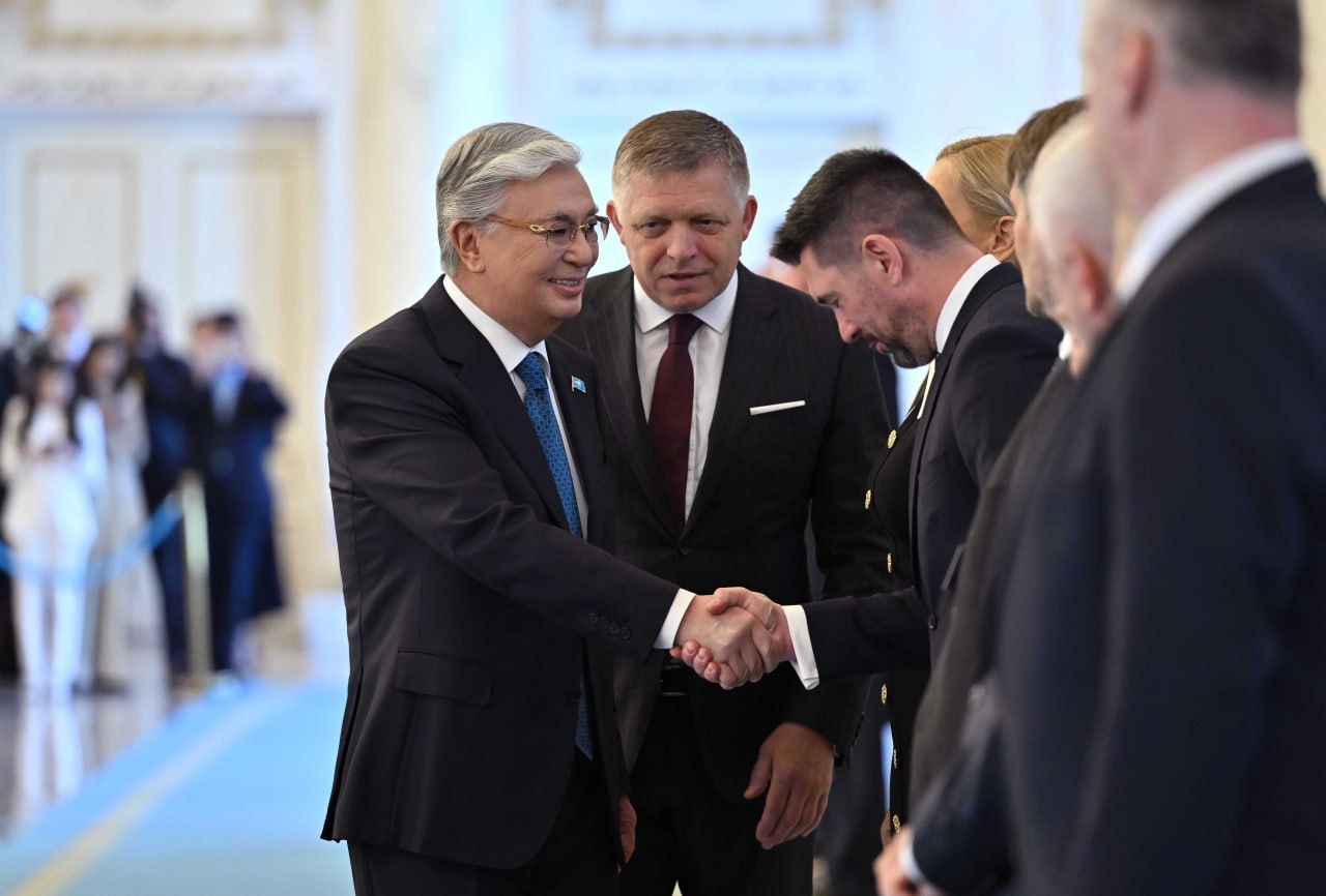Қасым-Жомарт Тоқаев пен Роберт Фицо бір-біріне ресми делегация мүшелерін таныстырды. Құрмет қарауылы ротасының бастығы рапорт берген соң Қазақстан мен Словакияның мемлекеттік әнұрандары шырқалды.