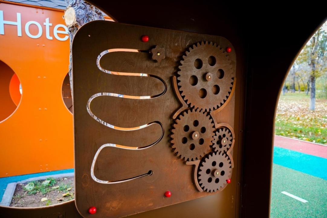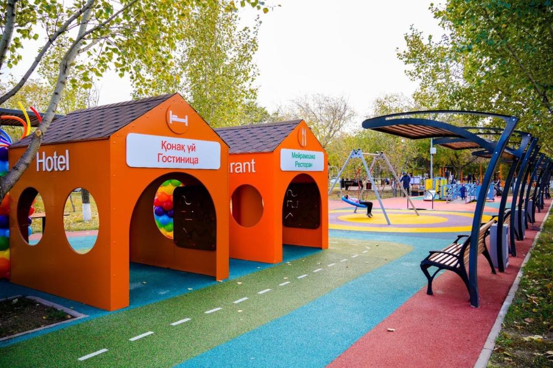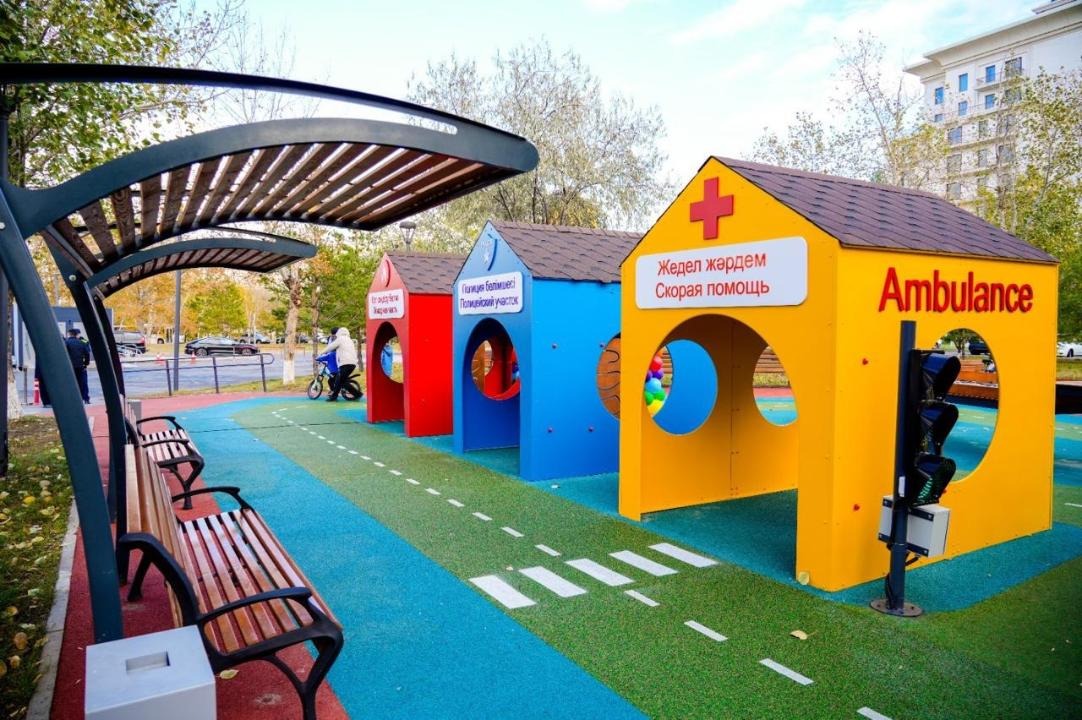 Сондай-ақ балалар үшін арнайы жасалған интерактивті мини-қалашықта өрт сөндіру бекеті, жедел жәрдем, полиция, қонақүй, СТО, мейрамхана сынды ғимараттар мен бағдаршамдар, жаяу жүргіншілер өткелдері, жол белгілері секілді инфрақұрылым элементтері бар.