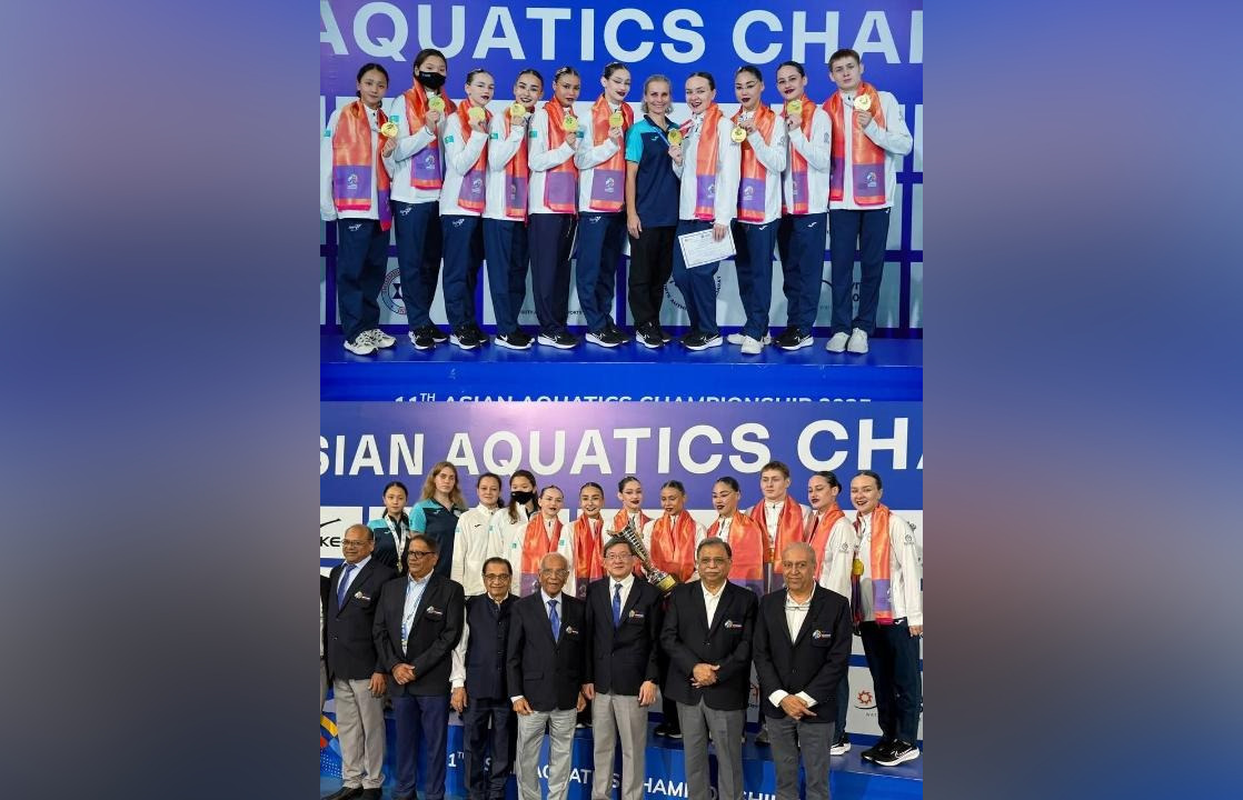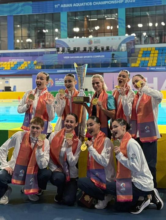 Бүгін Үндістанда су спорты түрлерінен өтіп жатқан Азия чемпионатында артистік жүзуден жарыстың соңғы күнінде біздің құрама 11 медаль (жеті алтын, екі күміс және екі қола) жеңіп алды, деп хабарлайды DKNews.kz.
