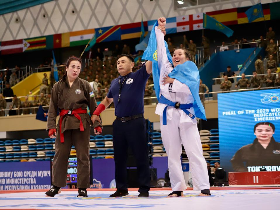 Астанада Қазақстан Республикасы Төтенше жағдайлар министрлігінің 30 жылдығына орай ерлер мен әйелдер арасында өткен қоян-қолтық ұрысынан әлем кубогының финалы аяқталды, деп хабарлайды DKNews.kz.