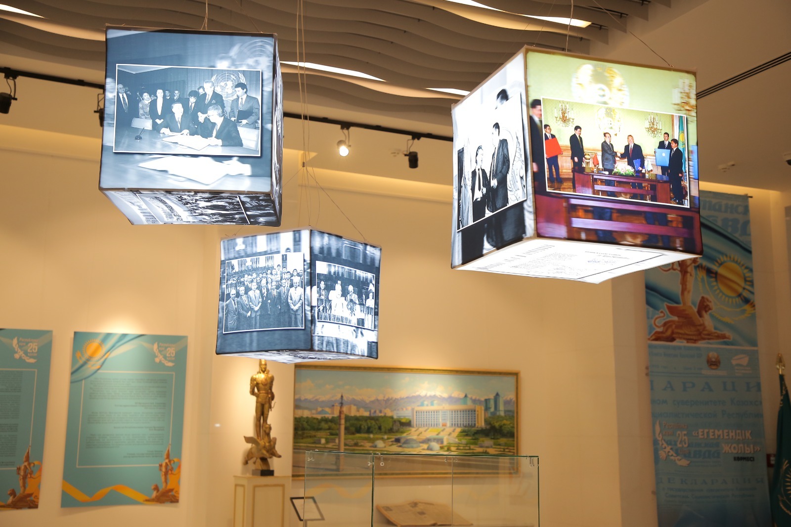 «1990 жылғы 25 қазанда Қазақ КСР Жоғарғы Кеңесі Республика егемендігін жариялаған тарихи шешім қабылдады. Дәл осы күннен бастап ұлттық мүдде, заңдар мен құндылықтарға басымдық берілген, демократия мен халықаралық беделіміздің іргетасы қаланған жаңа дәуір басталды. Бүгін ашылып отырған көрме – тәуелсіздікке бастар осы маңызды қадамды еске салумен қатар, халқымыздың еркіндікке, өркендеуге және өзін-өзі айқындауға деген ұмтылысын бейнелеуге арналған», – деді өз сөзінде Президенттік орталық директорының орынбасары Ботагөз Қайыпова.