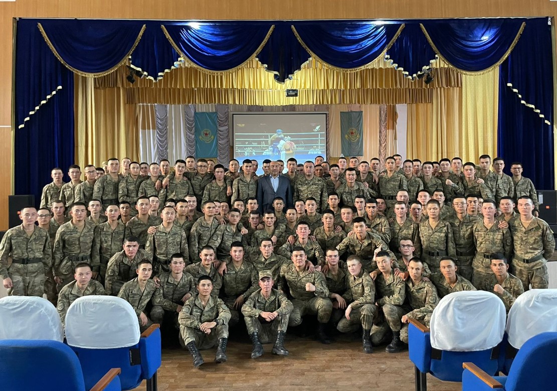 «Қазіргі қоғам — жастардың қолында» тақырыбында өткен әсерлі кездесуде чемпион өз өмір жолы мен спорттағы жетістіктері жайында сыр бөлісіп, жас сарбаздарға табандылық пен отансүйгіштік туралы өнегелі әңгіме айтты. Ермахан Ибраимов сарбаздарға мақсатқа жету жолындағы еңбекқорлық пен тәртіптің маңызын атап өтті.