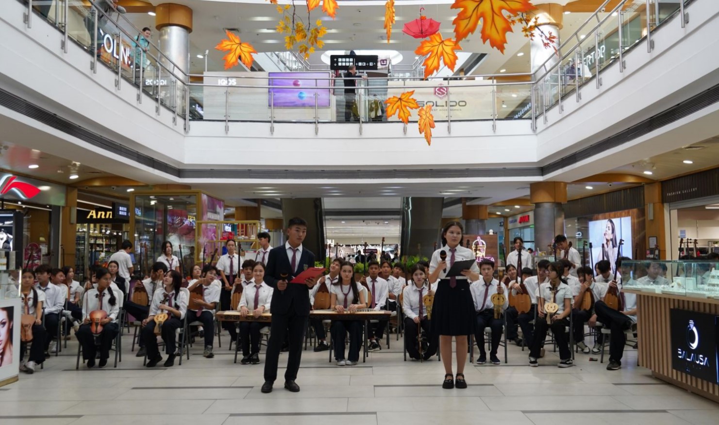 Алматы қаласы Наурызбай ауданындағы Назарбаев Зияткерлік мектебінің 100 оқушысы 25 қазан – Республика күні мерекесіне орай дәстүрлі «Ұлы дала мұрагерлері» атты домбырашылар флешмобын ұйымдастырды, деп хабарлайды DKNews.kz.