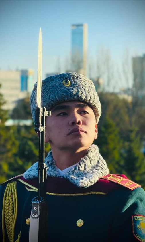 «Қарумен дефиле – ұзақ еңбектің нәтижесі. Әрбір бұрылыс пен қозғалыстың артында тәртіп пен табандылық жатыр» Ефрейтор Юлдашбек Қарабалаев