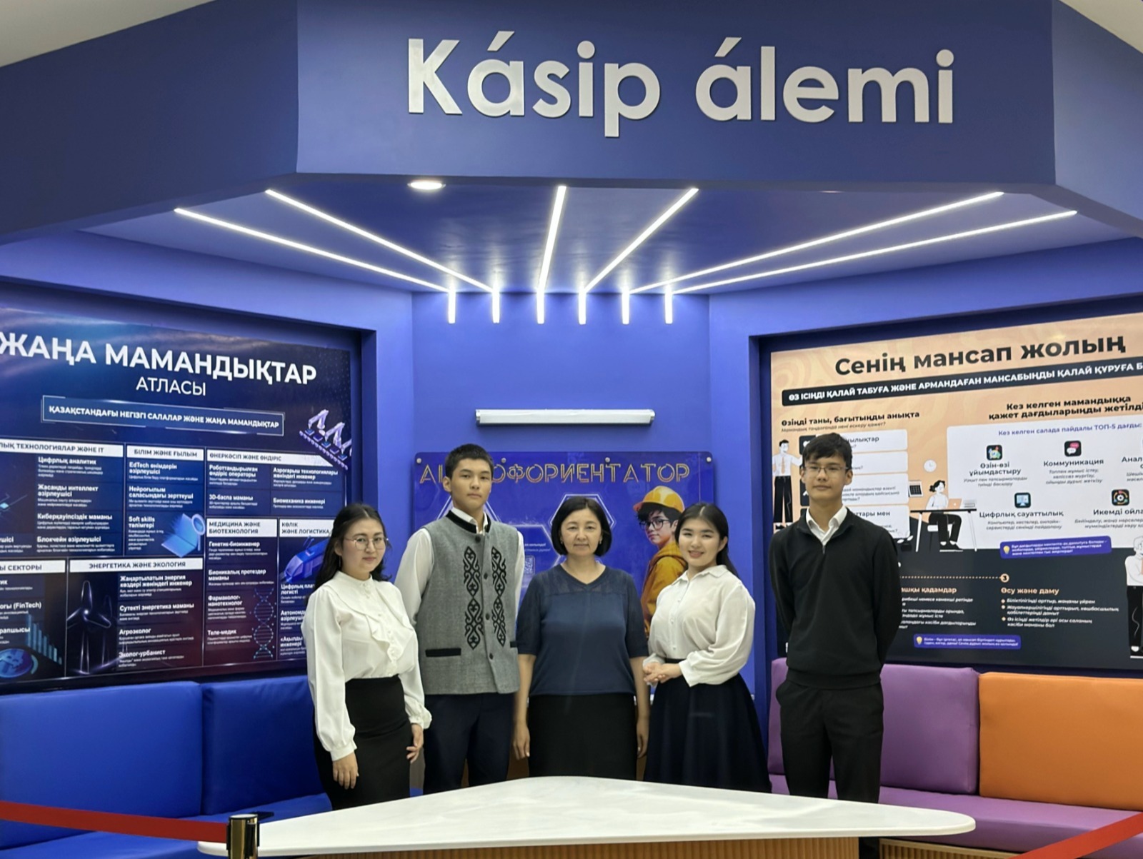«Kàsip Àlemi» кәсіптік бағдар беру кеңістігі осындай инновациялықшешімдердің бірі болып табылады – бұл болашақ мамандығын саналы түрдетаңдауға ұмтылатын мектеп оқушыларына арналған заманауи және жайлы жаңаформаттағы мини-коворкинг. Бұл мектеп ішінде арнайы ұйымдастырылғанаймақ, онда оқушылар әртүрлі мамандықтар, қажетті дағдылар және мансаптықтраекториялар туралы ақпарат алады. «Kàsip Àlemi» оқушыныңқызығушылықтарын талдау және негізгі дағдыларын анықтау арқылы әрбіроқушының даму траекториясын жекелендіруге мүмкіндік беретін интерактивті ЖИ құралымен интеграцияланған.