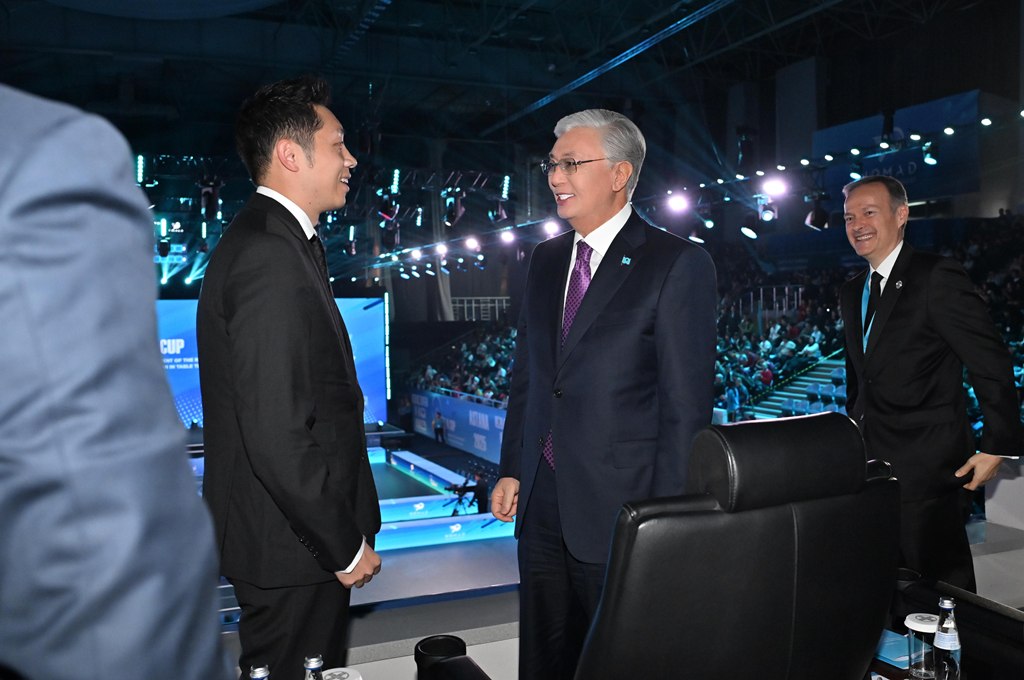Қасым-Жомарт Тоқаев Президент Кубогының негізгі шараларының бірі – үстел теннисінен әлемдік жұлдыздардың қатысуымен өтіп жатқан шоу-матчты тамашалады, деп хабарлайды DKNews.kz.