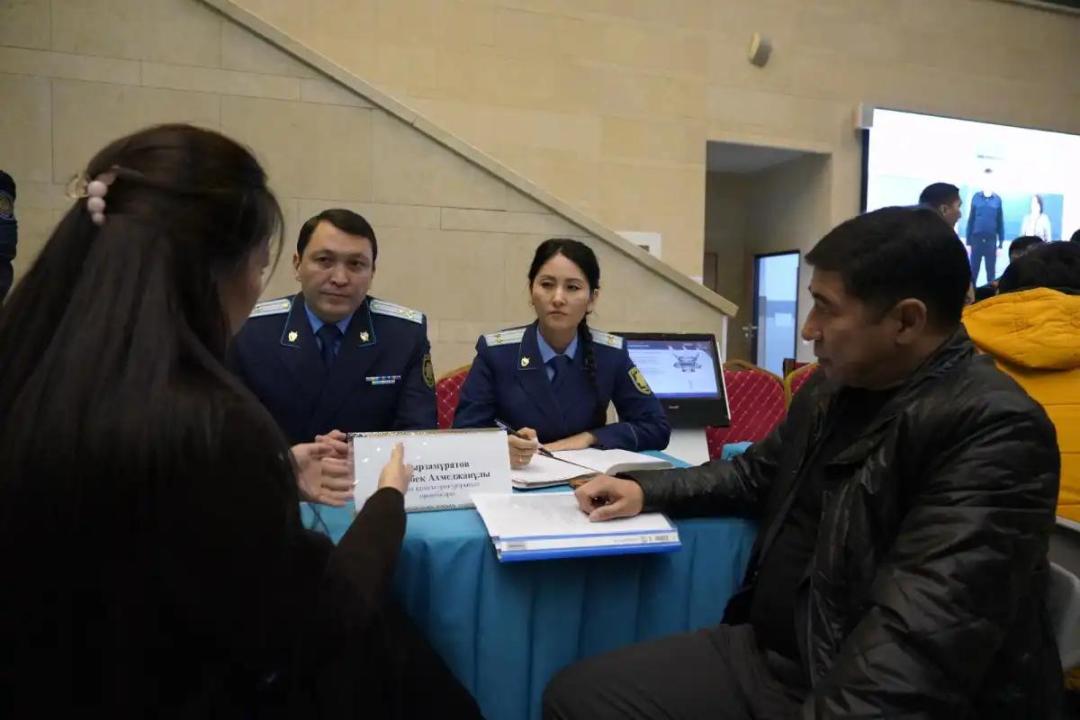«Бүгін «Заң және тәртіп» қағидасы аясында «Халық заңгері» деген акциямыз жүріп жатыр. 100-ге жуық мемлекеттік қызметкер халықты мазалаған сұрақтардың жауабын табуға көмектеседі. Сағат 17.00-де басталды. Азаматтардың жұмыс уақыты аяқталуына ыңғайлап, осы уақытқа қойдық. Түнге дейін келуші халықтың барлығының сұрағына жауап іздейтін боламыз. Кез келген сұрақпен құқықтық көмек алуына болады. Мысалы, бір сұрақпен әкімдіктің бірнеше басқармасына бару керек болса, осы жерден бірден сұрап, мәселесін жедел шешіп алуына мұрындық болуға тырысамыз. Аудан прокурорлары, қала прокурорларының орынбасарлары, әкімдіктің барлық басқармалары өкілдері, аудан әкімдіктері аппаратынан келіп отыр.