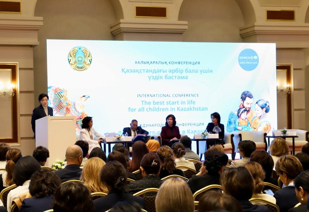 Өз сөзінде Светлана Жақыпова конференцияға қатысушыларға алғысын білдіріп, барлық балалар үшін тең мүмкіндіктерді қамтамасыз етуде мемлекет пен халықаралық серіктестердің бірлескен жұмысының маңыздылығын атап өтті. Министр елімізде бала тәрбиелеп отырған отбасыларды әлеуметтік қолдаудың көпдеңгейлі жүйесі іске асырылып жатқанын, оның мақсаты – туу көрсеткішін ынталандыру және ата-аналық жауапкершілікті қолдау екенін айтты.