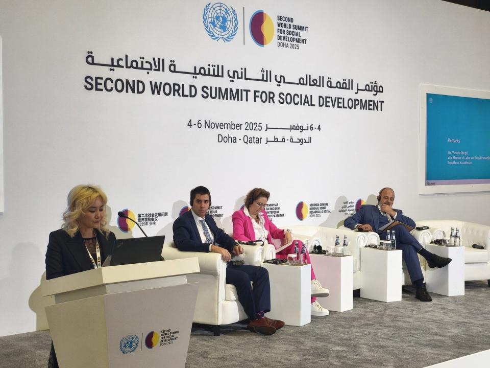 Катарда «Әлеуметтік дамудың мүддесіндегі екінші жоғары деңгейдегі дүниежүзілік кездесу» Дүниежүзілік саммиті өтіп жатыр. Қазақстан делегациясы құрамында ҚР Еңбек және халықты әлеуметтік қорғау вице-министрі Виктория Шегай бар. Ол әлеуметтік әділеттілікті қамтамасыз ету мен лайықты еңбекті ілгерілету, сондай-ақ жастарға инвестиция салуды арттыру мәселелеріне арналған сайд-ивент пен дөңгелек үстелге қатысты, деп хабарлайды DKnews.kz.
