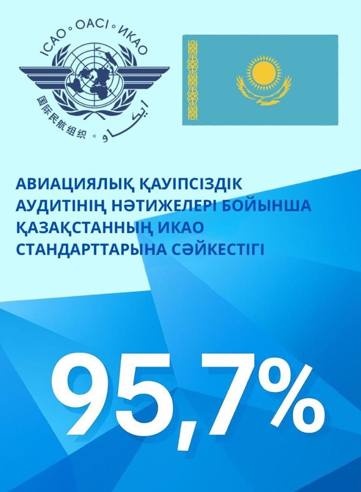 Қазақстан авиациялық қауіпсіздік бойынша ИКАО стандарттарына сәйкестігін 95,7%-ға жеткізді, деп хабарлайды DKNews.kz.