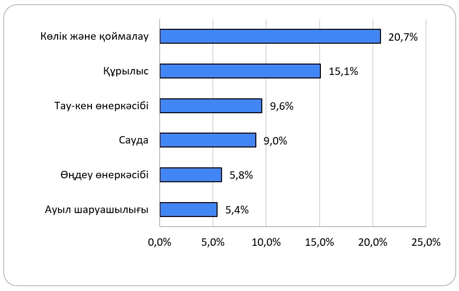 Егер салалар бойынша статистикаға қарайтын болсақ, онда экономиканың өсуі мұнай салаларынан басқа салалармен қамтамасыз етілетінін көруге болады. Мысалы, 2025 жылғы 10 айда көлік саласы жылына 21%-ға, құрылыс 15,1%-ға, ал сауда 9%-ға өсті. Тауарлар өндірісі жылдам өсуде - ж/ж 8,2%-ға, ал қызметтер 5,3%-ға артты.