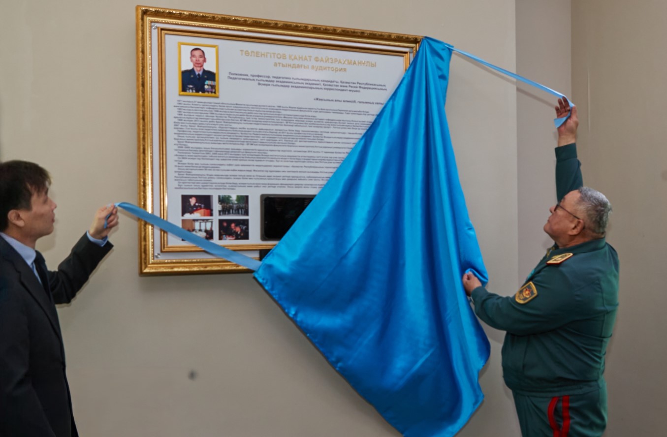 Жиналған қауымға Қанат Файзрахманұлының өмірдерегі мен қызмет жолы, еңбектері жайлы баяндаған бейнеролик көрсетілді. Содан кейін арнайы оқу аудиториясының ашылу рәсімі өтіп, салтанатты түрде лентасы қиылды. Ғалым атын иеленген аудиторияда полковник Қанат Төлеңгітовтің ғылыми еңбектері, әскери қызметтегі жетістіктері мен өмір жолы туралы баяндалған тақта орналастырылған. Факультет басшысы полковник Савердин Имиров ашылу салтанатында аталмыш аудитория болашақ офицерлерді даярлау ісінде, ғылыми- зерттеу жұмыстарын жүргізуде және әскери-патриоттық тәрбиені нығайтуда маңызды рөл атқаратынын айтты.
