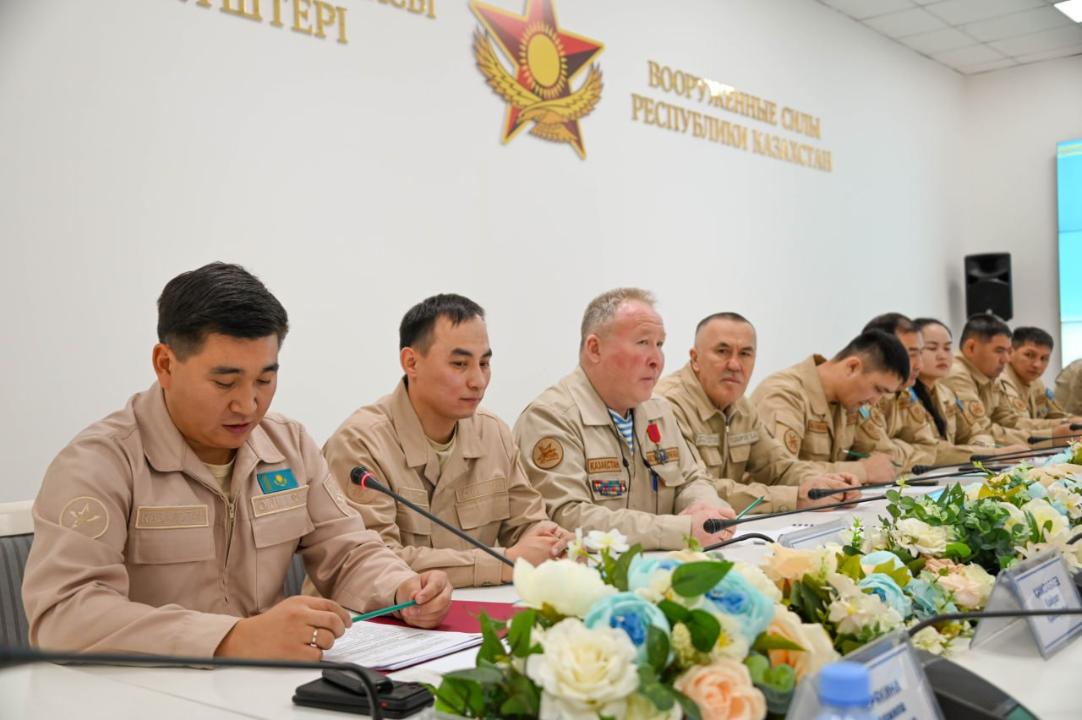Есептік кездесуде «Жас сарбаз» әскери-патриоттық қозғалысының төрағасы майор Мейірбек Меңдіғалиев Қарулы күштердің Ұлттық әскери-патриоттық орталығы бастығының атынан ведомство өкілдеріне алғыс хаттар табыс етті.