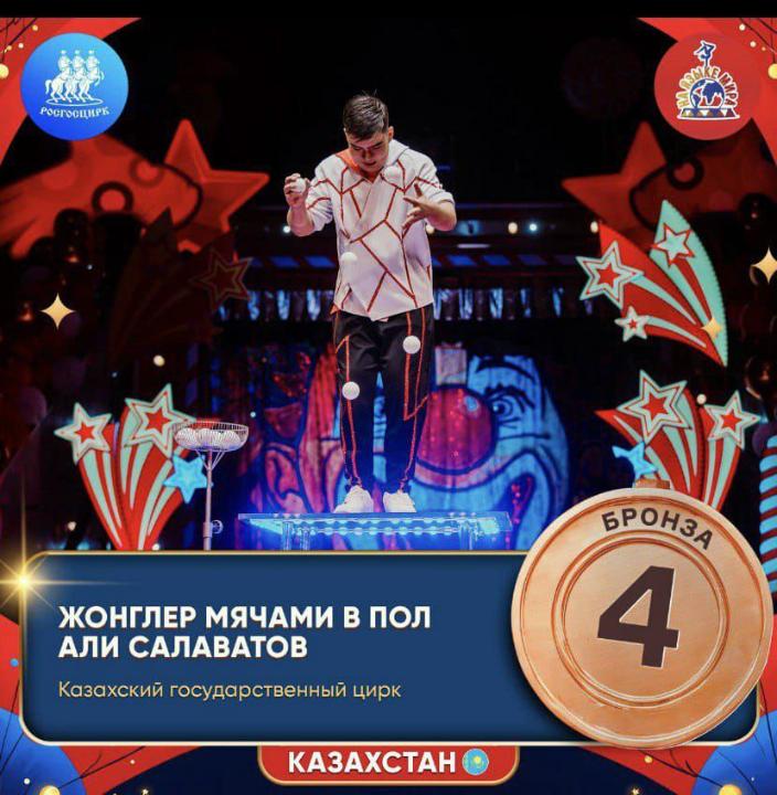 Алматы қаласы Мәдениет басқармасына қарасты Қазақ мемлекеттік циркінің жас талантты өнерпазы, цирк әулетінің жалғастырушысы, Ж.Елебеков атындағы РЭЦК студенті, 16 жастағы Әли Салаватов Ресейдің Тула қаласында өткен «На языке мира» V Халықаралық балалар мен жастар цирк өнері фестивалінде қола жүлде алды, деп хабарлайды DKNews.kz.
