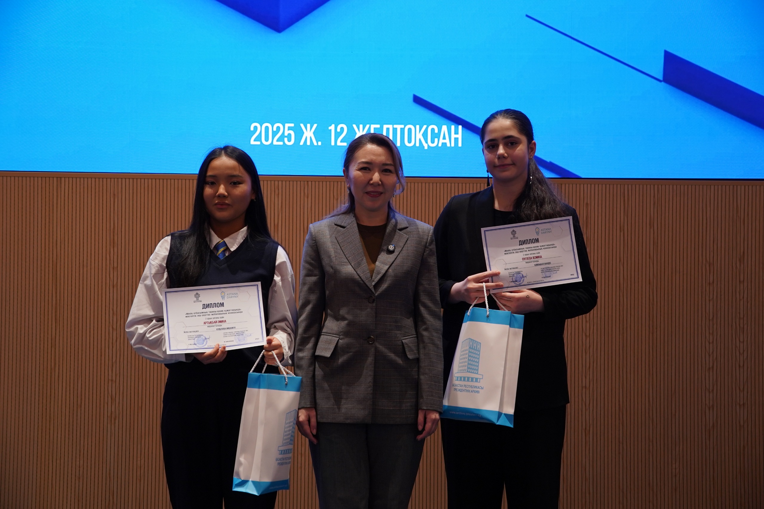 - 3-орынды Ыбырай Алтынсарин атындағы BINOM School оқушысы Баширова Аида, Бибігүл Төлегенова атындағы креативті мектептің оқушысы Айана Игисинова және №67 гимназия оқушысы Серікбай Айгерім иеленді.
