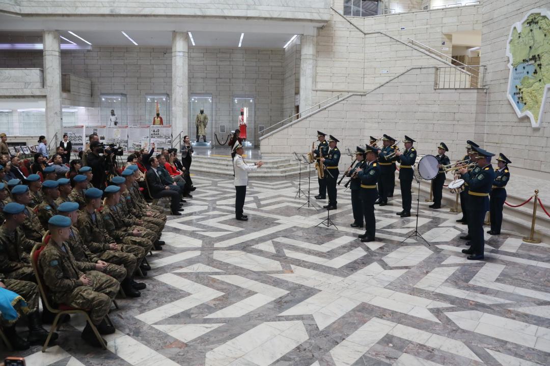 Мерекелік бағдарламаны Құрлық әскерлері әскери институтының оркестрі мен Десанттық-шабуылдау әскерлері әскери қызметшілерінің қарумен жасаған саптық дефилесі толықтырды. Олар жоғары деңгейдегі саптық дайындық пен темірдей тәртіпті паш етті.