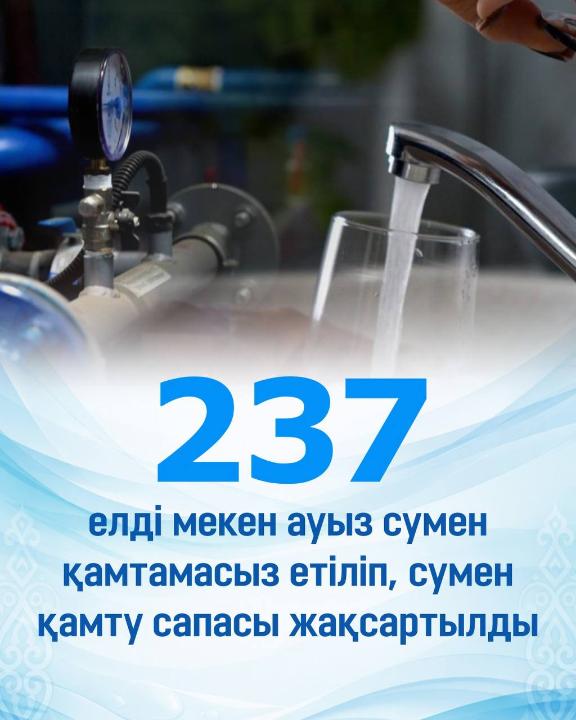 237 елді мекен ауыз сумен қамтамасыз етіліп, сумен қамту сапасы жақсартылды. Жалпы алғанда, 2025 жылы 449 мың адам сапалы ауыз суға қол жеткізді.