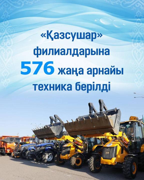 «Қазсушар» филиалдарына 576 жаңа арнайы техника берілді. Бұл техникалар су шаруашылығы нысандарын салу, жөндеу және тазалау жұмыстарында белсенді қолданылып жатыр.