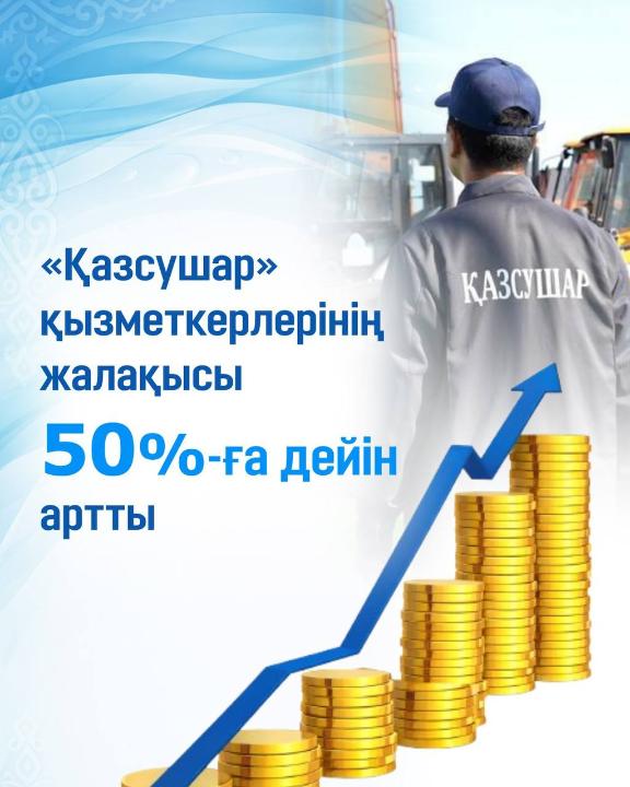 «Қазсушар» қызметкерлерінің жалақысы 50%-ға дейін артты. Бұл шара су шаруашылығы саласына қызығушылықты арттырып, кадрлық әлеуетті күшейтуге бағытталған.